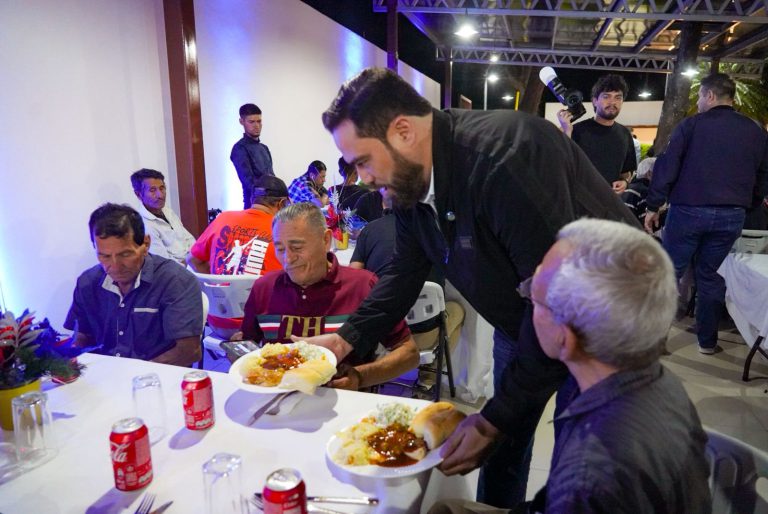 22 de diciembre de 2025. El alcalde de San Salvador Centro, Mario Durán, ofreció una cena navideña a más de un centenar de personas en situación de calle que reciben asistencia en el Albergue Municipal Katya Miranda. Este convivio es organizado cada año por el edil, para celebrar la Navidad y compartir un momento de dignidad con los usuarios del recinto.