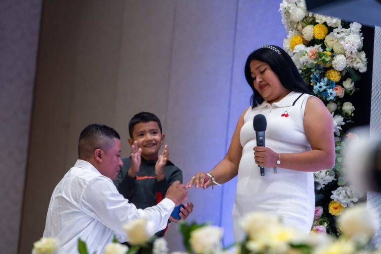 Entre flores, acordes de música en vivo y el tradicional pastel de bodas, la ceremonia se transformó en una verdadera fiesta del amor. Los detalles fueron cuidadosamente preparados para crear un recuerdo imborrable en las parejas.