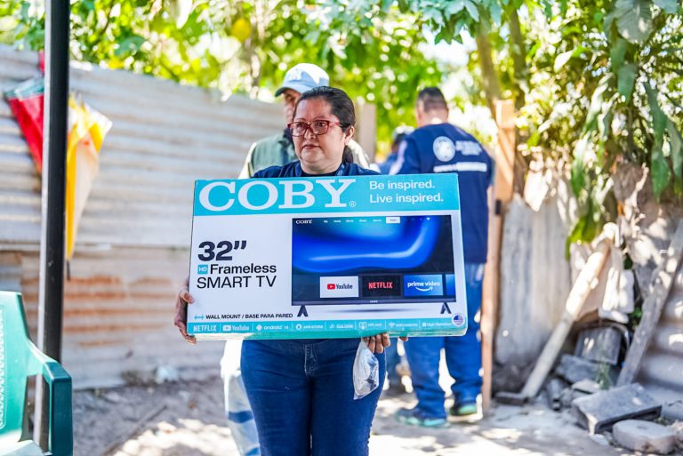 La asistencia municipal incluyó equipamiento para el hogar con: camas, colchonetas, kits de limpieza, electrodomésticos (licuadora, plancha, televisor) y mobiliario esencial como clóset y juego de comedor.
